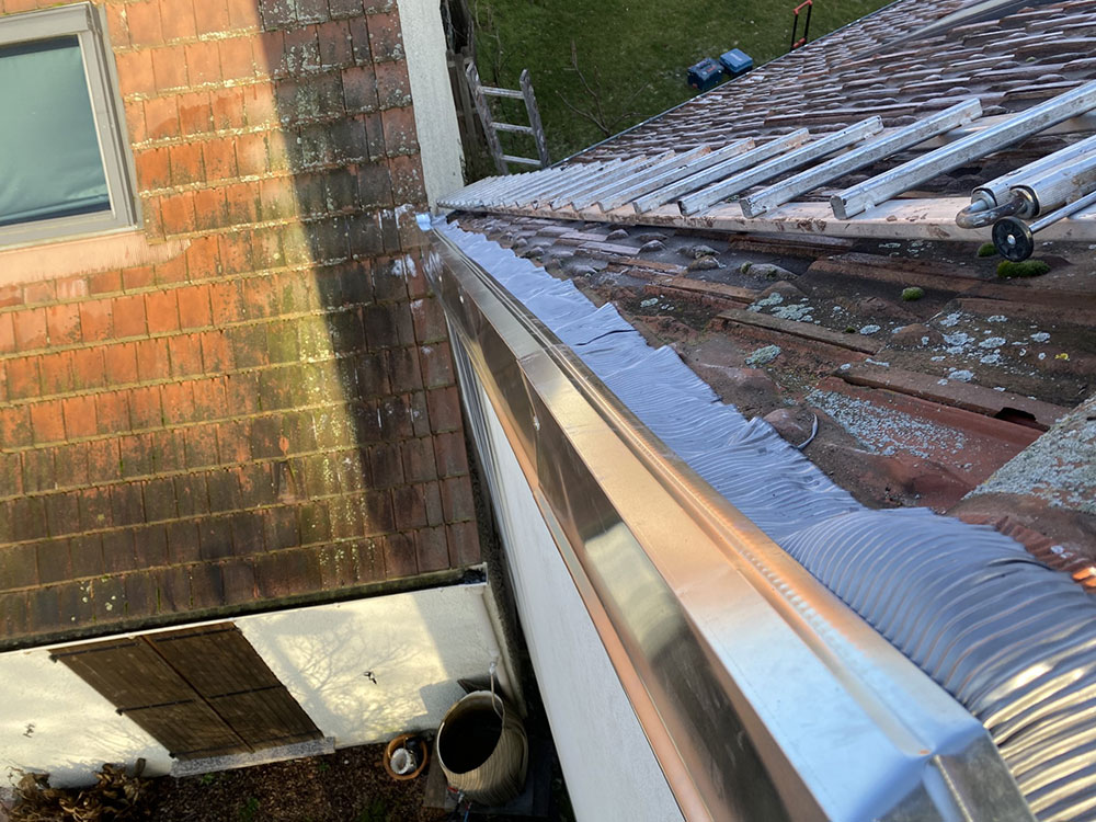 Voici la pose de rives en zinc à bavette sur la commune de Saint-Martin-du-Tertre, 95270. Nous avons déposé les anciennes qui n’étaient plus fixées au bois pour y installer une nouvelle planche de rive sur toute la longueur est installer nos rives en zinc à bavette.